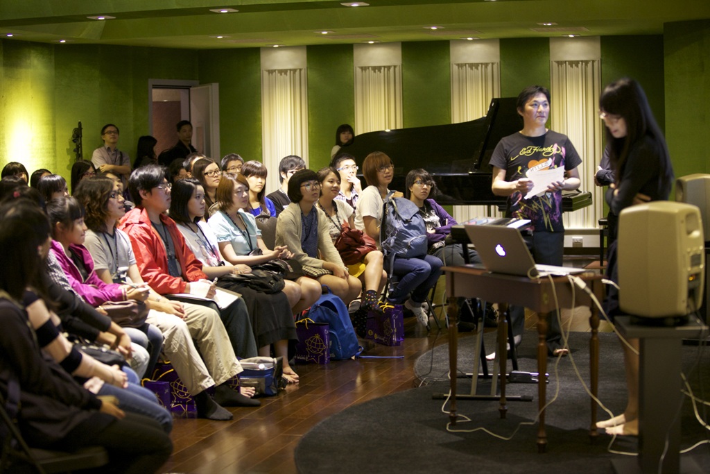 整個配樂研習講座過程開放學員參觀「智冠科技」音樂製作中心的先進設備與環境,初步了解配樂製作相關程序,並由從事遊戲配樂創作多年的蔡志展老師及賈愛國老師講授遊戲配樂的製作過程解說。蔡老師擔任「智冠科技」音樂製作中心的音樂總監,而賈老師則是「智冠科技」音樂製作中心的執行製作,兩位老師從單機遊戲到線上遊戲,一路參與、引領遊戲配樂的演進。而學員也攜帶自創的音樂作品,進行現場觀摩、交流,面對面與講師溝通。