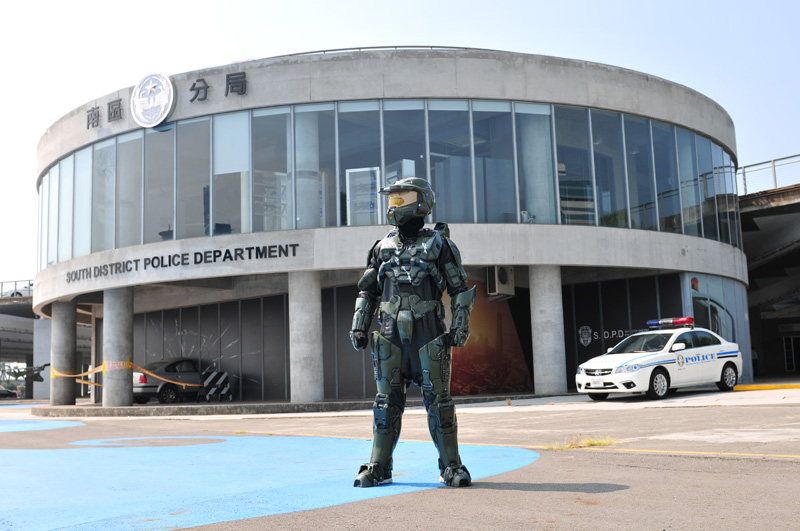台南熱情民眾首次看到 Halo 4《最後一戰 4》士官長,都被士官長的英雄風範震懾,英雄魅力可見一斑!