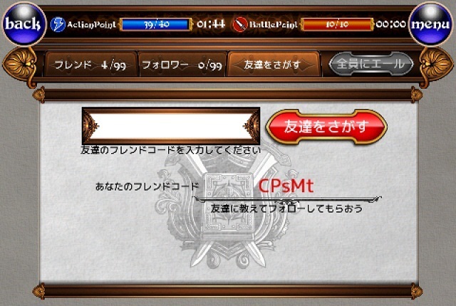 玩家利用「朋友代碼(フレンドコード)」,將他人的代碼輸入欄位並按下「尋找朋友(友達をさがす)」並按下「追隨(フォローする)」就能結交成朋友,自己也可以將「朋友代碼」留給他人,讓他們成為你的「追隨者(フォロワー)」,當你的朋友上線時,可以看見他們在你的地圖上出現,不論要打 BOSS 或是三對三「闘技場」,都能向他們呼救。