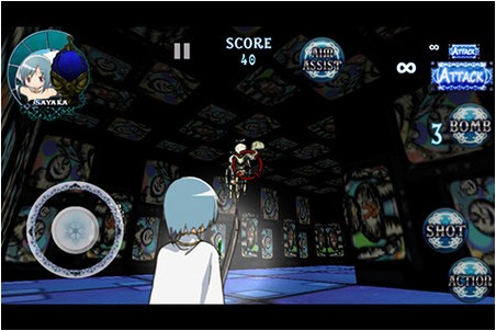 魔法少女小圓」劇中的兩名角色「沙耶香」與「杏子」,闖過敵人「魔女」在關卡中設下的重重陷阱,並打到鎮守於關卡最深處的頭目。