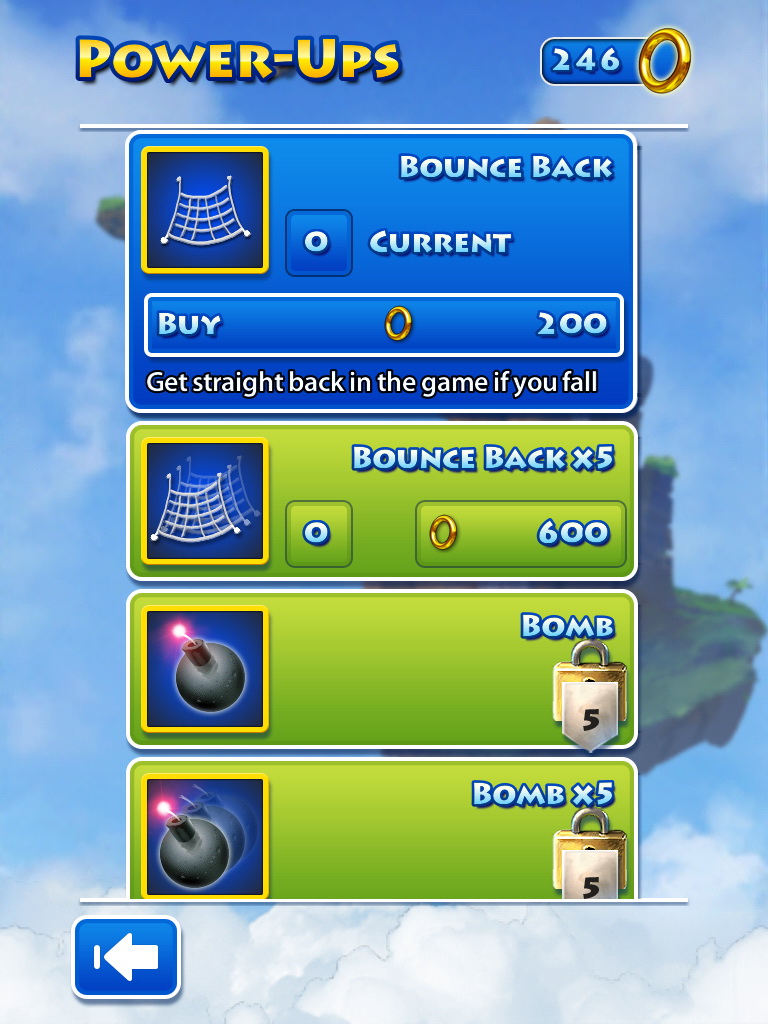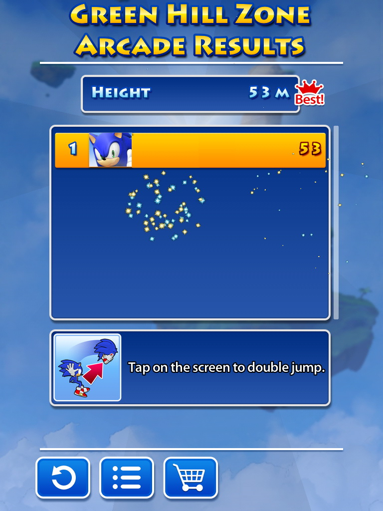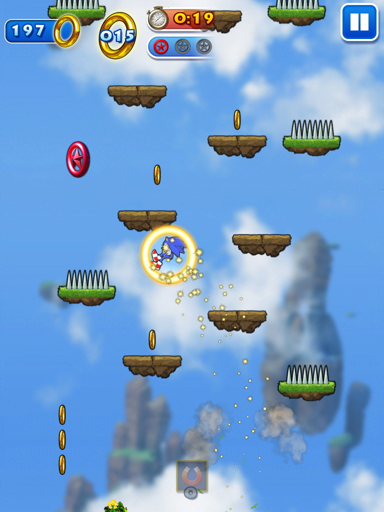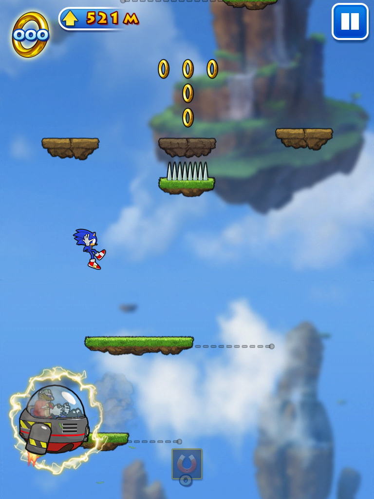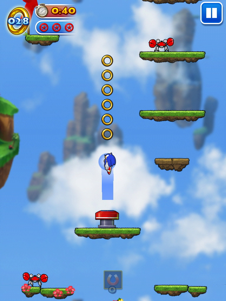 Doodle Jump )》的向上跳躍闖關類型作品,在遊戲中我們所熟知的主角音速小子索尼克要再一次為了阻止蛋頭博士的陰謀,救回可愛的動物夥伴而展開冒險。