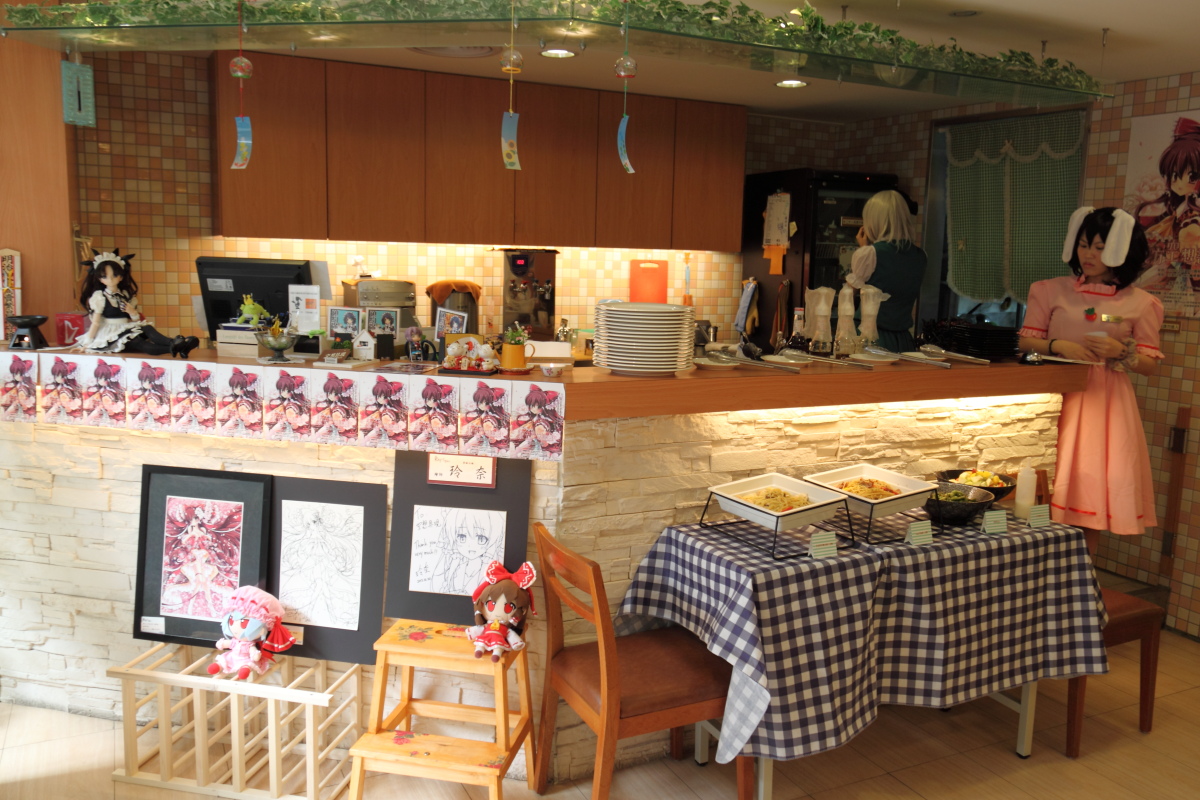 並且因應畫展主題,店內擺設也都以「東方 Project」為主題擺設,店員們也化身為「東方 Project」中的角色陪伴用餐顧客,同時店內也推出應景特色餐點,並舉辦各種東方相關的活動。