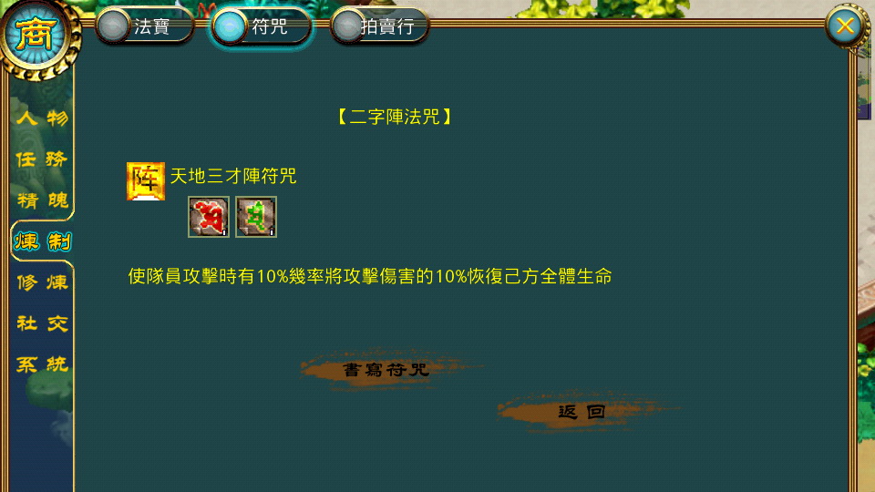 符咒是用來增強各種屬性的道具,要多多善用喔