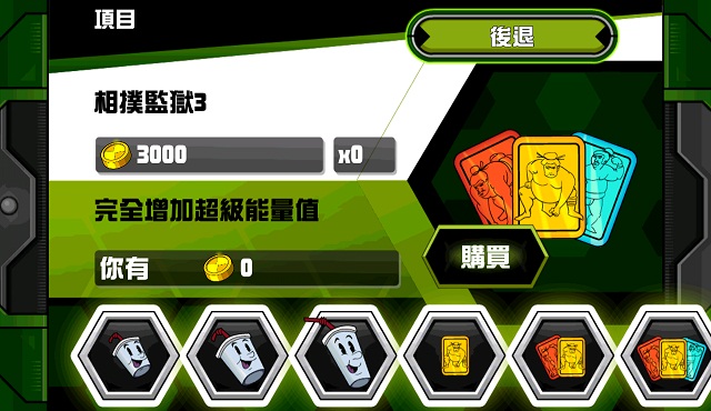 遊戲中必須使用「金幣」購買或解鎖戰鬥輔助道具、能力加強道具、外星人及新任務,只要在「故事模式」或「街機模式」中取得勝利,就能獲得取得「金幣」。