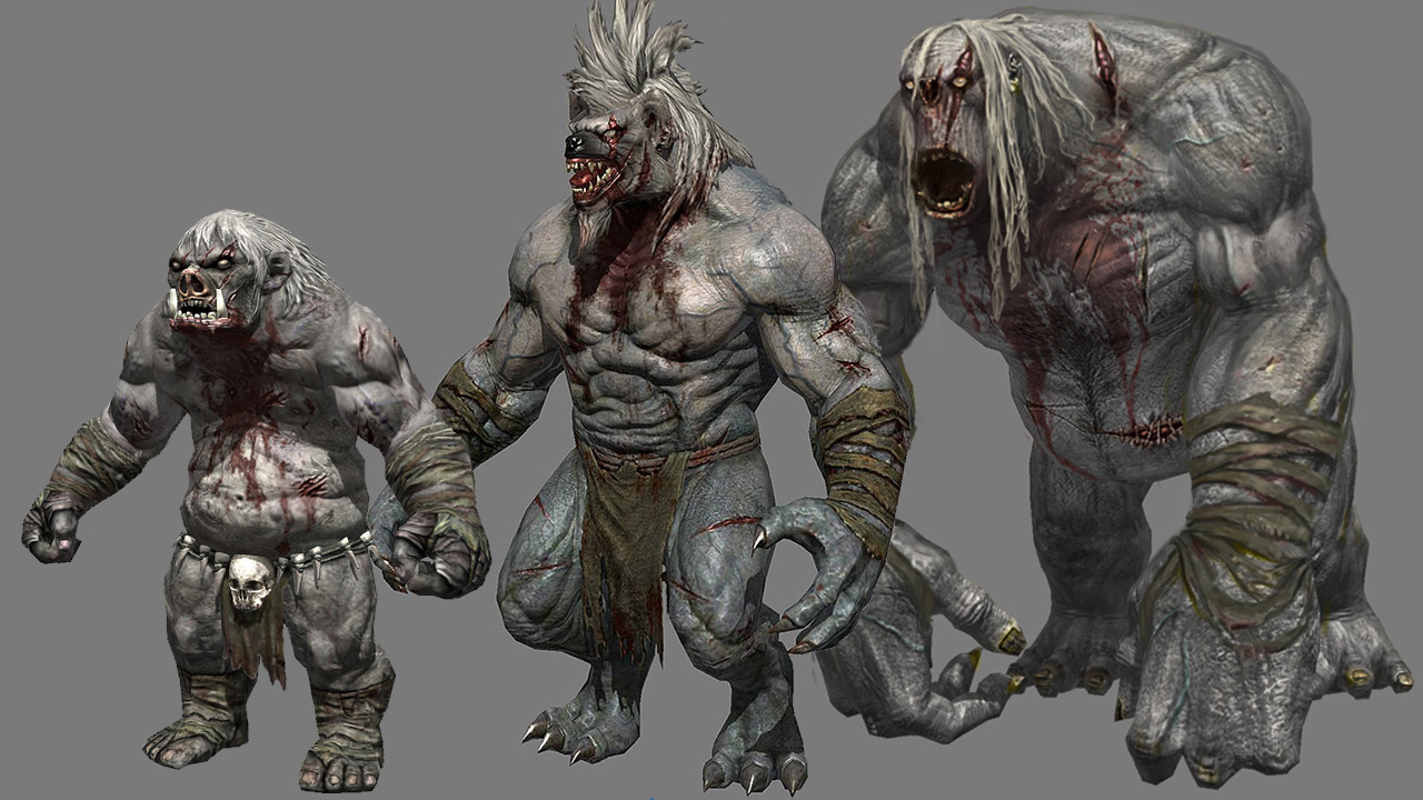 左起半獸人殭屍、狼人殭屍與食人魔殭屍