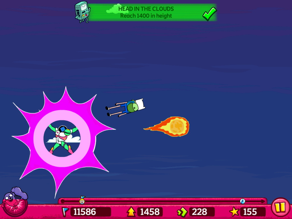 由於當阿寶在空中時玩家並不能插手任何行動,且一開始關卡中出現的特殊項目物件稀少,連老皮踢人的力道也不夠,因此玩家的成績在開場後很大程度取決於運氣成分。但隨著闖關累積的星星越多,玩家也能用以消耗召喚出更多各類原作腳色的幫手在空中接力,使阿寶飛的更高、更遠。