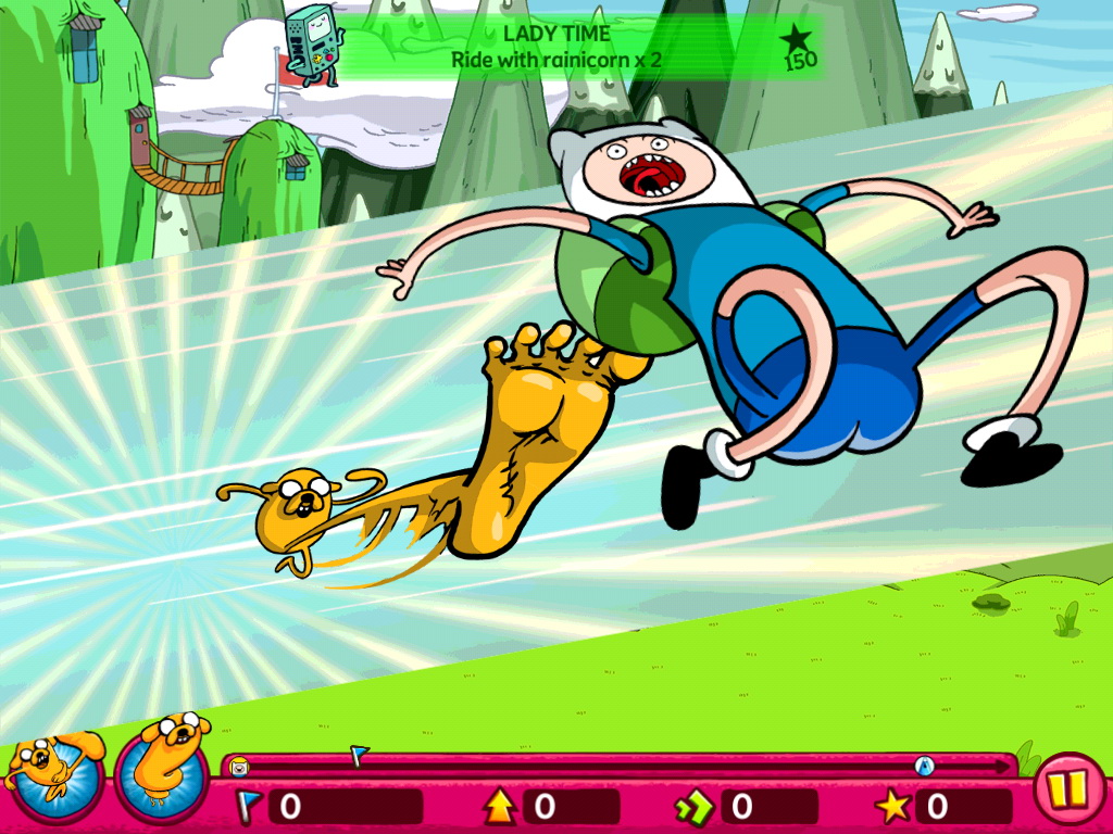 如騎上彩虹姐姐那長長的獨角獸背脊,透過連點畫面就能飛行一段不短的距離,而如果在上碰上吸血鬼女王艾薇爾,她則會毫不留情的用大鐵鎚將阿寶打個全壘打!