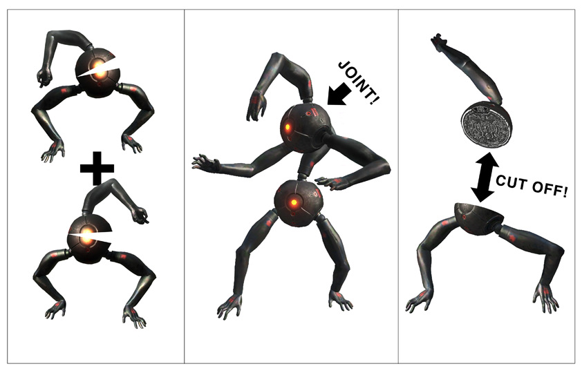 「小月光」磁鐵模型,手臂可動,2 隻可合體,可拆成兩半模擬被斬斷的模樣
