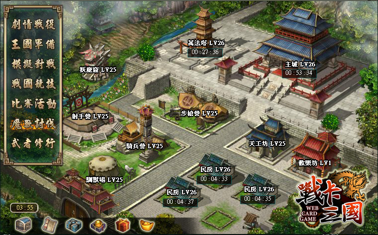 踏入亂世的初期,玩家擁有屬於自己的城池,還可依據欲召募的士兵種類而決定不同的升級方向。除了知名武將以及士兵軍隊的集結,更能根據內建的武者修行系統將原本實力普通的自己,進一步的提升自身成為可挑戰其他三國猛將的存在。