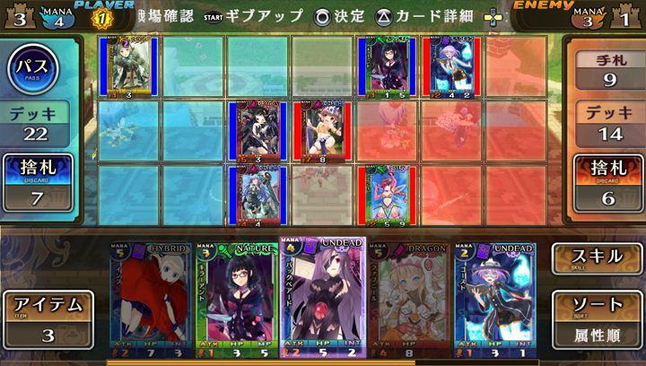 總共有主角的夥伴「菲亞」,奧奇・奈爾沃的代表「涅夫」,以及最初的魔物娘「銜尾蛇」三張卡片。