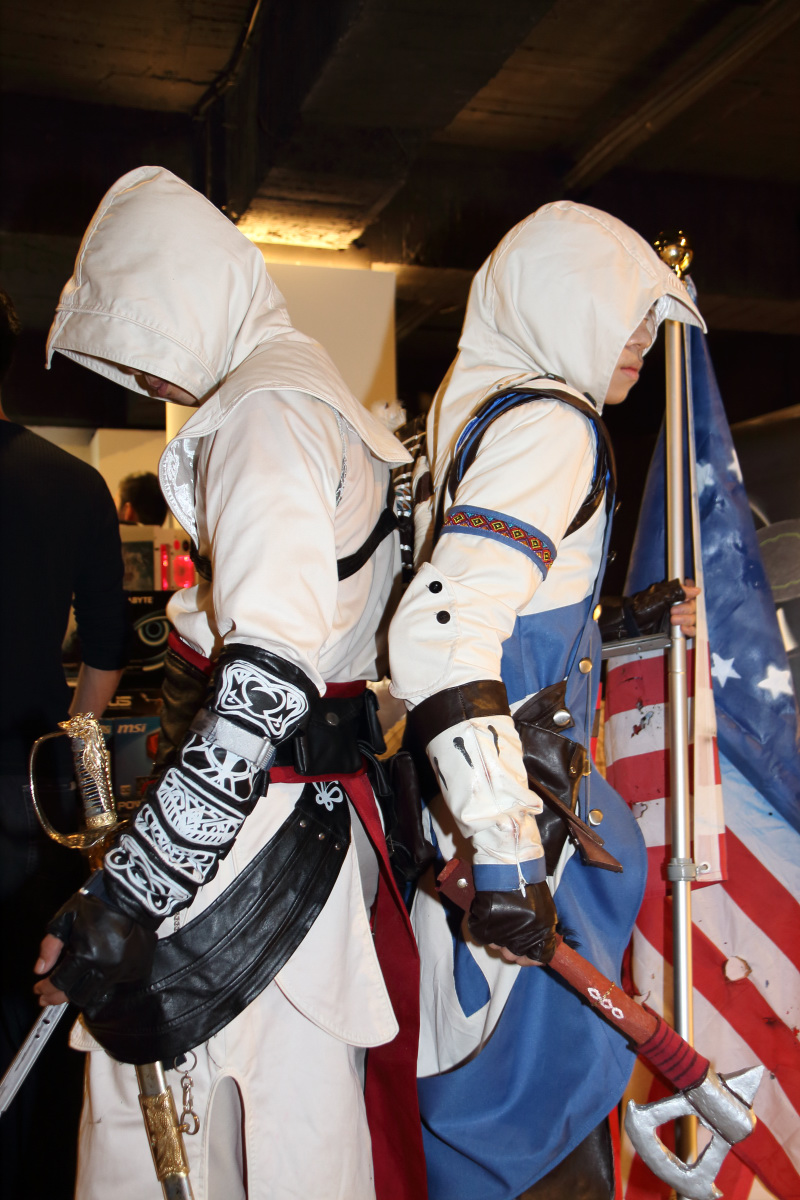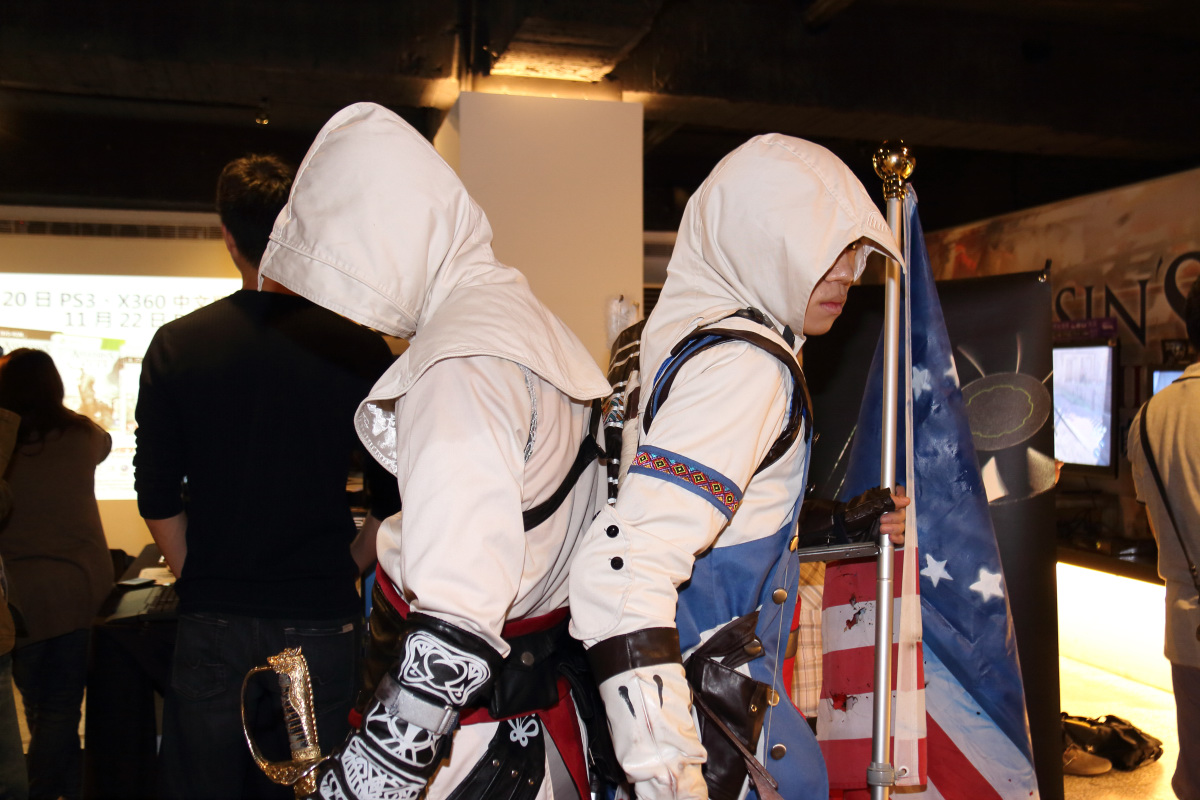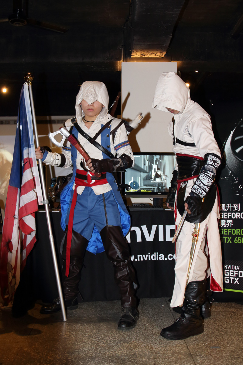 兩位刺客 Coser 使用 Cooler Master 的滑鼠鍵盤試玩,不過...後面這位康納的袖劍似乎擺在很危險的地方吶!