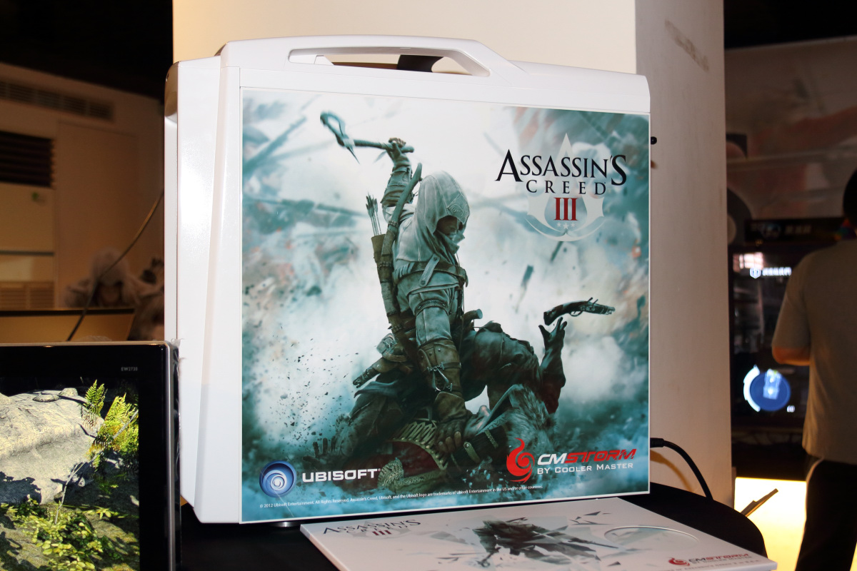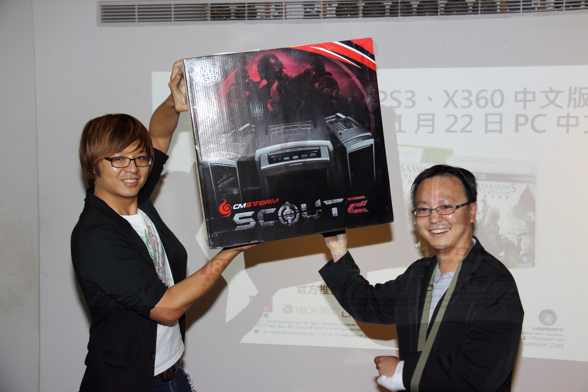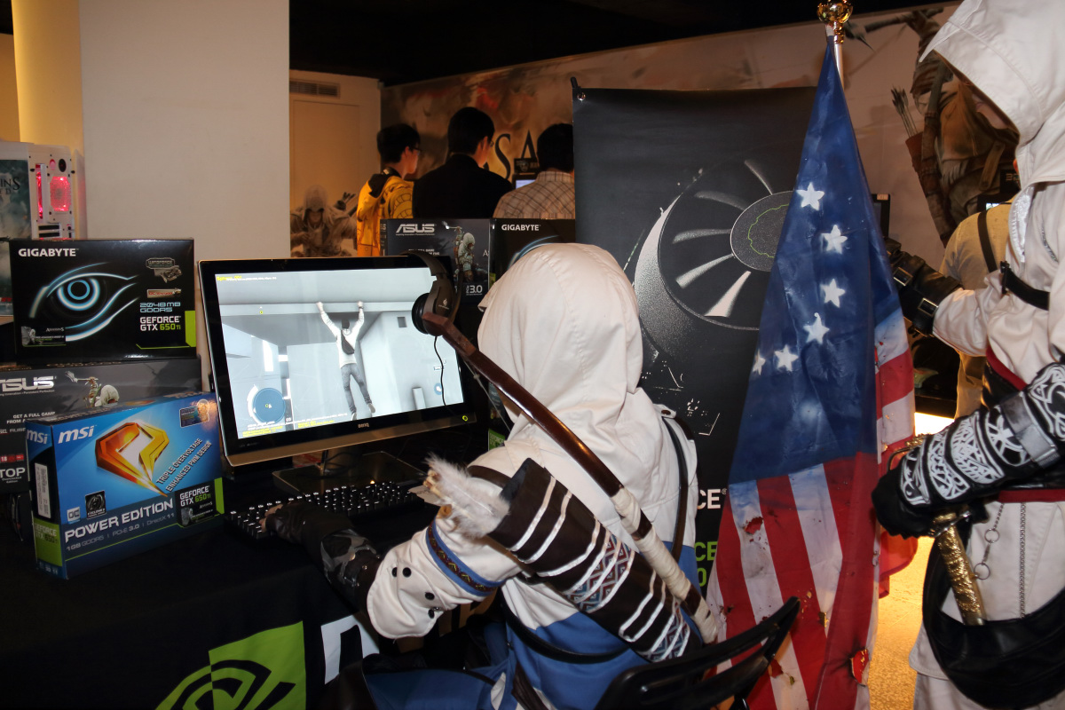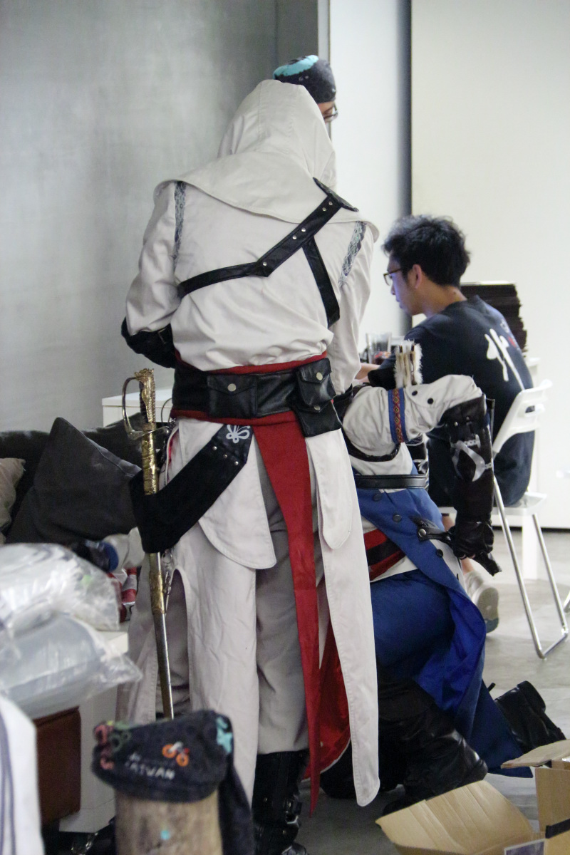 兩位刺客 Coser 使用 Cooler Master 的滑鼠鍵盤試玩,不過...後面這位康納的袖劍似乎擺在很危險的地方吶!