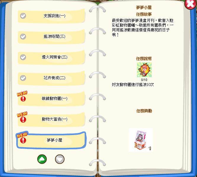 「彩虹動物園」以打造屬於你的專屬動物園為賣點,超過 200 種可愛動物讓玩家組合挑選,繼之前與心路基金會合作「心路小屋」後,這股可愛風潮也促使與《夢夢》少女漫畫月刊的合作,只要達成特定任務,即可在遊戲裡獲得超夢幻設施《夢夢》造型小屋一棟!不管是喜歡少女漫畫或是線上遊戲的朋友們都千萬不要錯過!