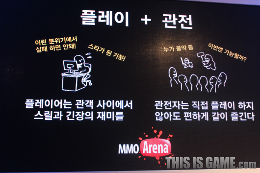 《瑪奇 2》主打 MMO 競技場,競技場也包含「看」的部分,換句話說,觀看其他玩家玩遊戲也很重要,但遊戲不是光看,觀戰人還能介入遊戲,可以向在打副本的玩家丟藥水。