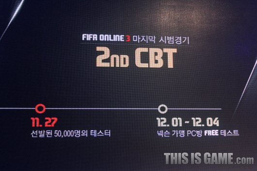 FIFA Online 3》正式營運前的最後封測會遴選 5 萬名玩家在 11 月 27 日開始測試,不是測試玩家也能在 12 月 1 日至 12 月 4 日於 NEXON 在韓國加盟網咖參加封測。