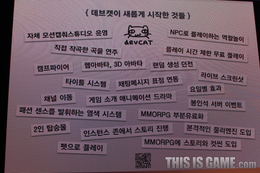 答:在國際企業的夾縫中首次發表遊戲真的讓人感到很大的壓力,但我們更應該做得更好,我們的遊戲不會被女性家族部(指韓國政府行政機關之一)扯後腿,所有玩家都能放心地玩,雖然現在是用 PC 架構研發遊戲,但以後也有可能會在 iPad 這些平台上研發。