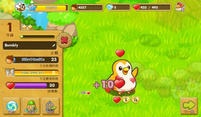 如同照顧活生生的寵物,不光是餵養他們,還要哄他們開心,太久沒進入遊戲照料或是剛餵飽他們時,他們的情緒就會顯得低落,玩家只要點擊這些寵物進入他的專屬視窗,利用觸擊面板左右搔動就能讓他們破涕為笑。