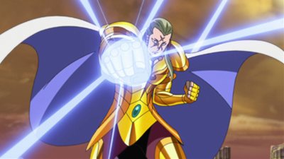 將龍峰的父親,紫龍守護著的天秤座黃金聖衣帶走並穿在身上。他在沒有裝備聖衣的肉身狀態下也能發揮強大的小宇宙,讓光牙、龍峰、榮斗、尤娜四人完全無法動彈的狀況下,將天秤座聖衣帶走。