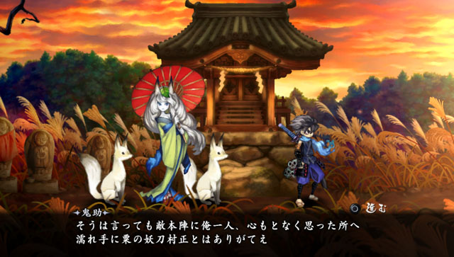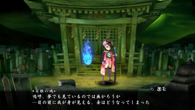 而這次的遊戲截圖公開了主角「百姫」跟「鬼助」與忍者以及武士,河童跟天狗,還有與比兩人還要大好幾倍的敵人戰鬥的場面,另外也公開了故事中的對話場面,還有旅途中前往泡溫泉的景像等。