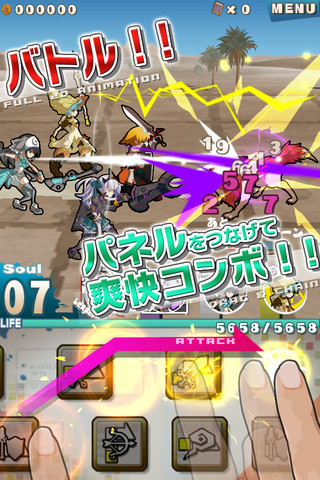 比較特別的是本作在戰鬥系統的設計,在荒野上的行進是採取有些類似俄羅斯方塊的拼圖形移動路徑,依據玩家的選擇將遭遇路上不同的怪物與之對戰或是獲取寶箱。實際與怪物開戰後下方面板上則會有玩家隊伍角色的職業記號,只要玩家以手指相連接角色符號就能在一次機會中發動更具殺傷力的攻擊!
