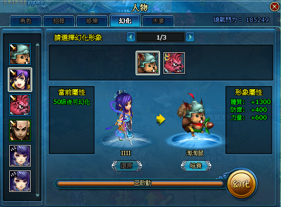 應玩家需求增加主角幻化功能,介面亦有培養戰鬥力增減提示。從此可以變身咔哇伊淘淘鼠,大行其道。