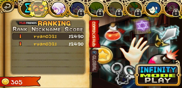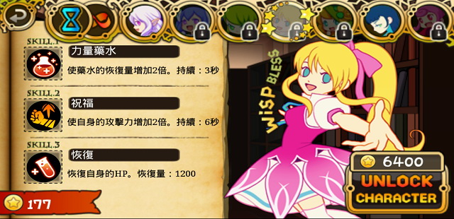 從遊戲上方的介面,可以看到共有七個角色可以選擇,但大部分都需要另外解鎖才能使用