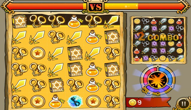 遊戲的方塊有「劍」、「手拷」、「藥水」、「魔法書」及「金幣」共五種基本方塊,當消除六個以上的方塊時,會出現具有解手拷功能的「鑰匙」方塊;當同時抵消四個相同的方塊時,可換到一個同類型強化版黃金方塊。