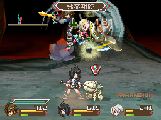 並且採用 RG 情緒量表,採取攻擊行動的話,RG 上昇角色的攻擊力會提升,不過防禦力和 HP 回復量都會降低;防禦或待機的話,RG 下降則反之。另外,RG 要提升到一定程度才可以發動奧義。這個邏輯有點取自《命運傳奇 2》的 SP 系統,不過系統複雜度簡化了不少。還有不能使用單獨的「回復術」,採用了在招式上裝備附屬效果回復 HP 的方式,或是使用「陣術」在範圍內慢慢回血這樣的系統。好處是不用綁定負責回復的補師組進隊伍,可以多一名配額自由運用;壞處就是,有的時候真的紅血需要來個大補,非得痛苦的防禦苦等回血令人感到焦躁。