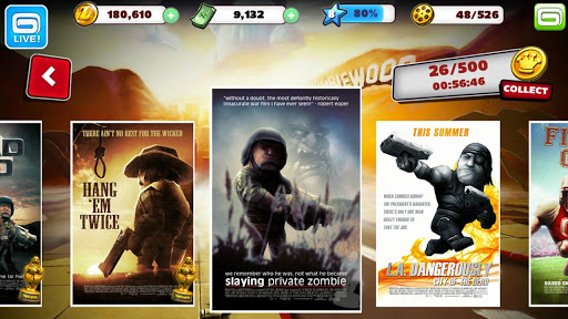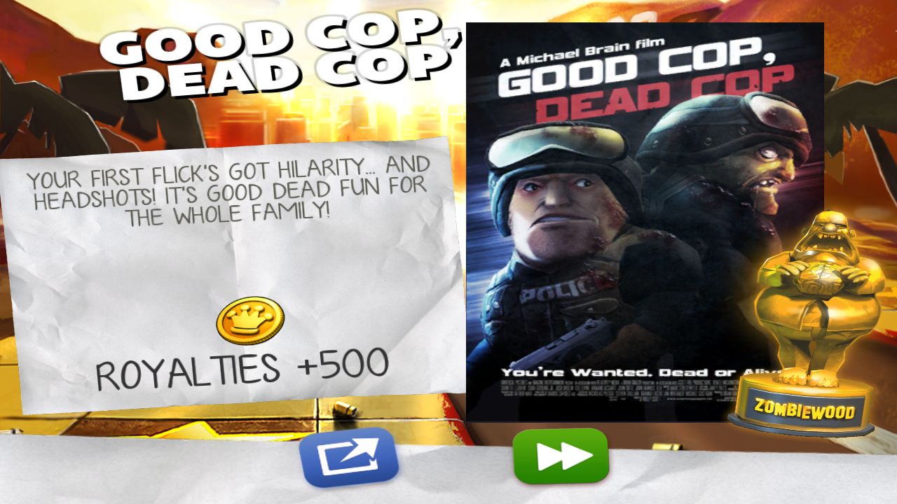 遊戲的關卡設計十分具有創意,每個關卡的內容都是一部電影,而且全部都是其來有自藏了許多好萊塢名片的梗。而玩家們主要是在打殭屍,但是其實同時也在進行電影拍攝,所以關卡開始與結束不僅有像是電影中的打板,甚至在遊戲中,導演還會有許多特殊要求,當然,達成特殊條件就會得到關卡的附加獎勵,不過,在面對一波波的殭屍還有中頭目的同時,還要分神去注意導演的要求,其實還滿有難度的。
