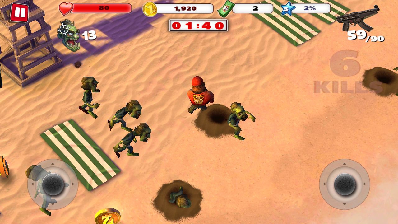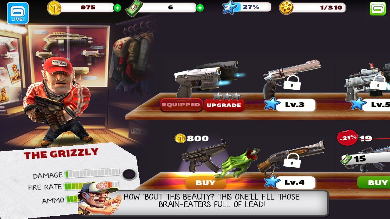 只要殺的殭屍越多,這主角還能「升級」,升級的同時玩家不僅能夠有更高的生命值,同時也能解開新關卡與道具的限制等。而除了像是 RPG 的升級要素之外,遊戲也能為主角購入各種武器和 bling bling 的服裝。