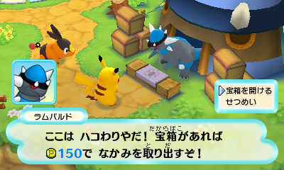 帶著在迷宮中發現的寶箱前往的話,戰槌龍就會用自傲的頭槌來幫你開寶箱。寶箱中可以取得對冒險有幫助的道具跟隊伍技能喔!