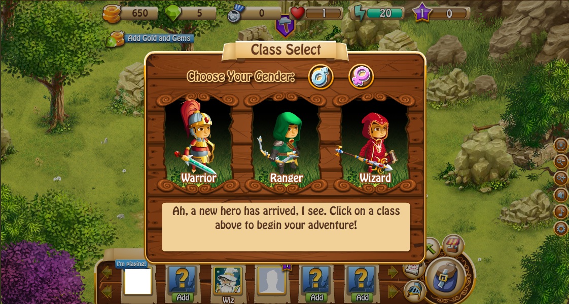 剛開始,玩家要先選擇自己分身的性別與職業,職業共有戰士、遊俠、巫師三種,而三種職業間的差異相信也不需多做解釋了。選定英雄的職業後,首要之務便是將城堡建好-甚麼,首要之務不是直搗魔王的巢穴嗎?先別急,基礎建設可是很重要的,等級一的勇者怎麼打得贏大魔王呢!因此我們必須先從重建王國開始做起,慢慢壯大自己的裝備與實力、與村民們搞好關係,才不會重蹈上一個英雄的覆轍。