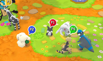 本作支援連線合作模式,可以找其他玩家一起組隊解任務。原先以為可以一起闖迷宮,但是目前看到的連線任務全部都是棋盤似的方形房間,場上敵人就是四隻神奇寶貝,或著一隻巨大的神獸。四對四的部分,其實只要出一隻會地震之類大範圍招的神奇寶貝就可以輕鬆解決大多數的任務,感覺有些單調。