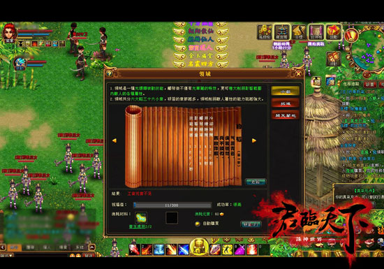 開天功能可增加領域持續時間,辟地功能可縮短領域的冷卻時間。對應的寶珠內有真氣便可使用開天或辟地功能,珠寶內的真氣越多,成功率越高,消耗的金幣越多。