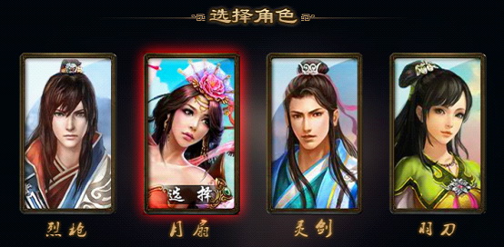 大俠傳》中有四個職業供玩家選擇,分別是輔助型的月扇、防高血厚的烈槍、主外攻的明刀、走群體路線的靈劍。男女性別則是對應職業的,月扇及明刀是女性、烈槍與靈劍為男性,人物造型上自是男的俊秀,女的俏麗。