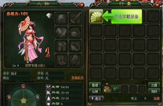 當角色達到 4 級時會開啟「包裹」功能,並獲得第一把初入江湖的武器。由此看來,《