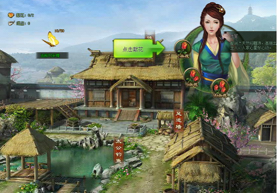 在一邊體驗劇情一邊通關時,玩家偶爾也會看到一些有趣的 NPC 對話。轉眼之間到了 15 級,系統提示開啟宅院系統,宅院裡可以釣魚,可以採蝶獲得遊戲銀兩。還可以送花給我們忠心的女僕,要是可以給我捶背就好了。