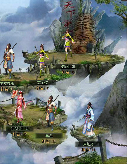 隨著角色等級達到 20 級,天梯系統也同時開放,玩家可站在天梯上挑戰其他玩家。勝利者將獲得榮譽積分,並利用此積分兌換江湖異寶或商城道具。挑戰越排名的玩家,所得的積分越多。
