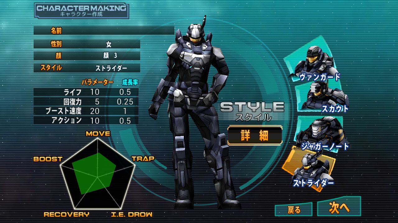 雖然星球表面已經無法居住,大家都得戴著看不到臉的頭盔出門,但是「創角」依然是遊戲很重要的一部分,剛進入遊戲之中,玩家們便能自定角色的造型,並且能從「均衡型」、「偵查型」、「重裝型」及「特戰型」四種不同的兵種中擇一作為角色職業。