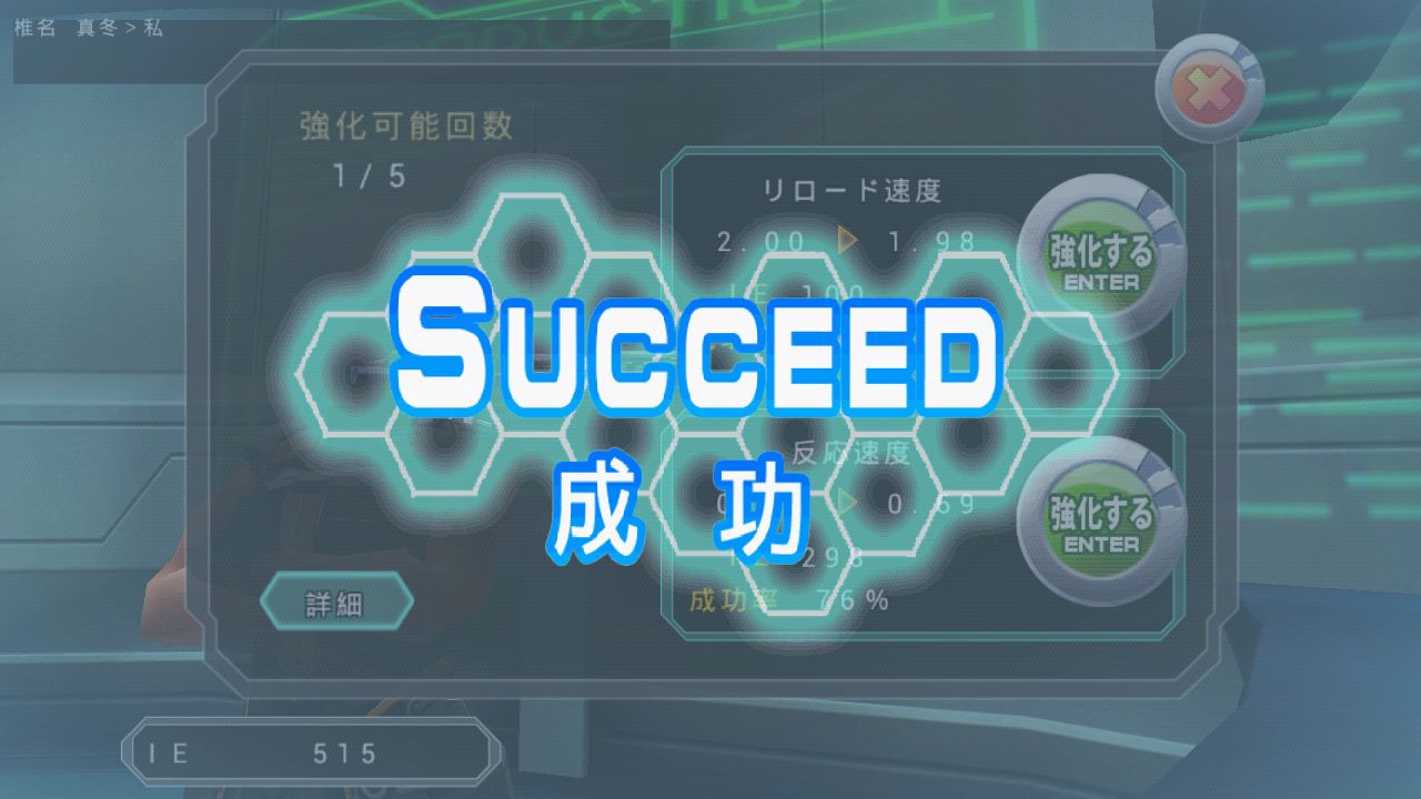 在成功擊敗目標之後,玩家可以獲得頭目身上的各種「素材」,而針對玩家剛剛的表現,系統也會給予評價並支給「I.E」,玩家能利用「I.E」強化基礎能力和現有武器,「素材」則可以和現有武器結合,開發出新款的裝備。
