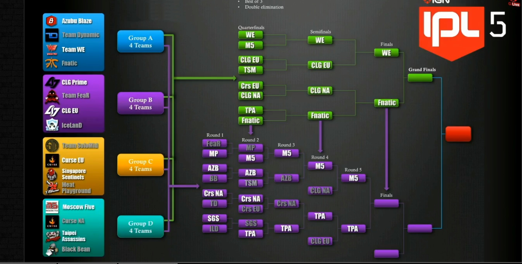 IGN Pro League 5 《英雄聯盟》聯賽稍早結束了本日的賽事,「台北暗殺星(TPA)」雖在日前輸給了 S1 冠軍 Fnatic 落入了敗部,但稍早連續擊敗了 Crs NA 以及 CLG EU 等強隊成功晉級,預計在明日再次對決擁有強勁實力的職業隊伍「M5」。