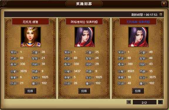 英雄招募攸關著玩家帶兵征戰四方的輸贏