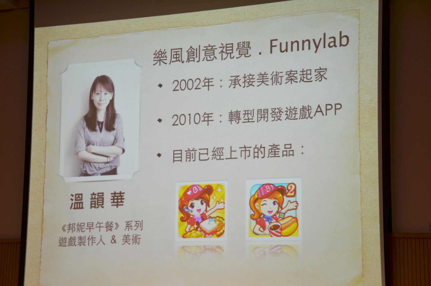 本次受邀前來分享「App 遊戲美術與視覺設計」,任職於樂風創意視覺的溫韻華與路致遠,先前曾分別推出