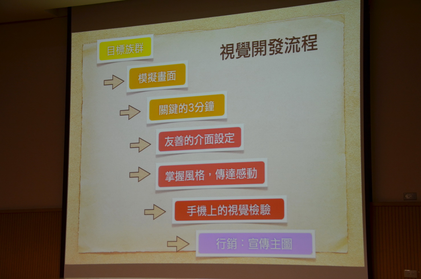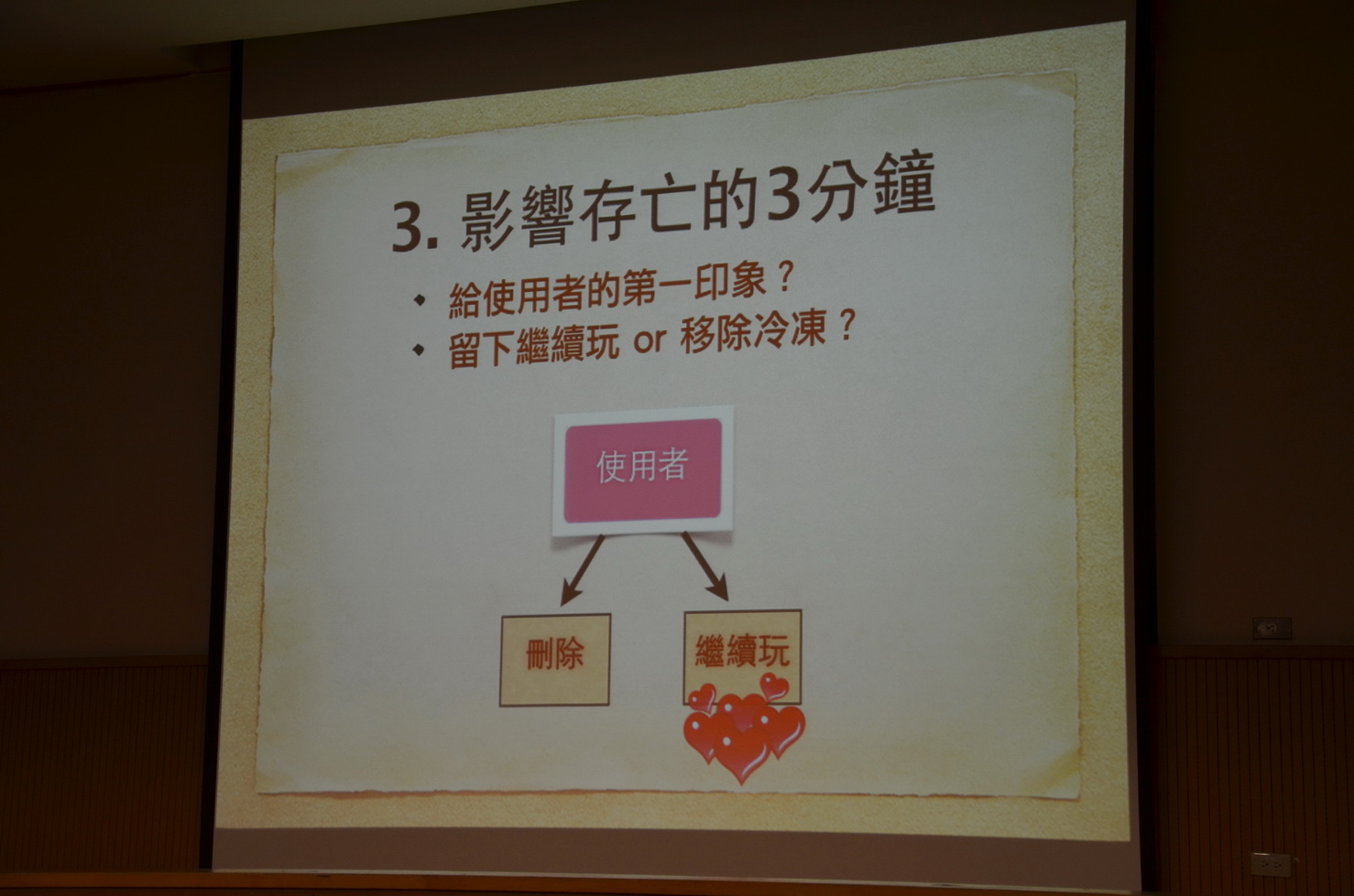 Louis 相當認同上一位演講者溫韻華的看法,表示在開發 App 之前必須非常清楚自己的目標族群是誰,因此開發團隊在事前的調查作業就顯得相當的重要,因為這同時也影響了往後 App 美術人員繪製的整體遊戲畫面風格。