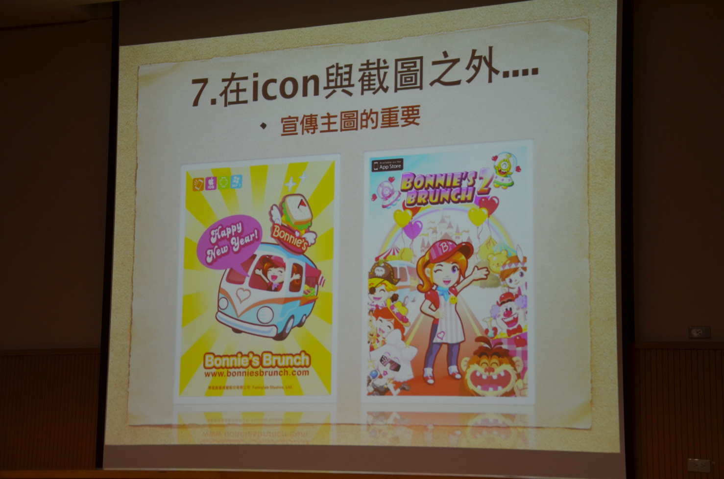 溫韻華表示,許多 App 開發人員都深知遊戲 Logo 以及截圖的重要性,因為玩家在選擇是否要購買遊戲時的依據,就是憑藉對於這些圖案的喜好與否。然而宣傳主圖對於宣傳遊戲來說,也是非常重要的,她舉出美術人員若可以多花一些時間來做額外的宣傳大圖,不僅可以強化粉絲對於遊戲的黏著度,同時也可以強化遊戲在媒體、展覽等用途時的宣傳效果。