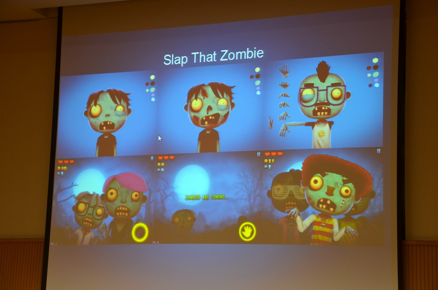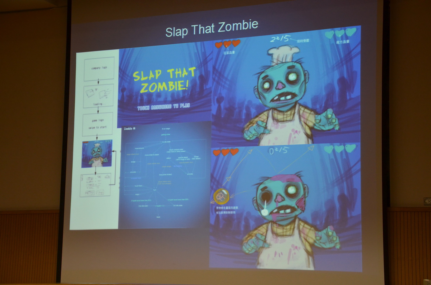 《殭屍巴下去》中他的夥伴 David 開發出一套系統,讓美術人員可以直接在這個環境下製作出各種不同的殭屍,並直接調校參數製作出殭屍在遊戲中的動畫表現,最後再透過 Dropbox 將成果上傳到雲端,這樣一來即使是遠在地球兩端的開發者,也可以透過這樣的合作模式直觀的開發遊戲。