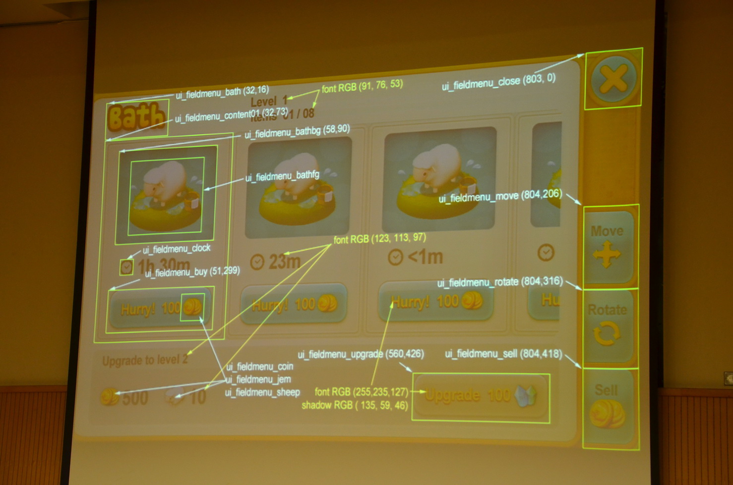 然而也不是每一次的 App 開發經驗都是那麼順利,Louis 舉出他在開發《Tiny Sheep》(即將在 App Store 上推出)的時候,是與在香港的一位程式人員配合的。然而這次這位夥伴就沒有這麼貼心的提供美術人員完整的開發套件,使得 Louis 不僅得反覆確認美術圖素是否沒有問題,同時也得花費大量時間標註遊戲各個介面的使用流程順序,以及許多零瑣的製作細節,這樣一來整體的開發工作就顯得較為疲累。他在現場也呼籲各大遊戲公司的主事者,應該要請程式人員給予美術工作者一個完整的開發套件,讓這些美術人員可以更專注在創作方面,而不是一些瑣碎的細節上。