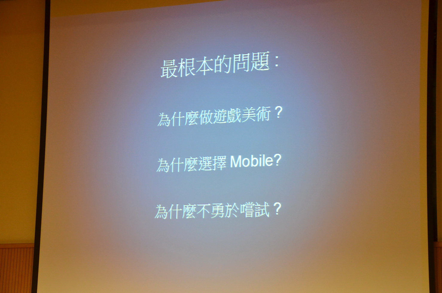 最後 Louis 也提出了一個重點,他認為許多國內業界的美術人才都只願意專注在自己最擅長的繪畫風格上,導致台灣業界自製的遊戲畫面風格到最後看起來都一樣,他不否認這或許是主事者要求下所導致的結果,但他認為美術人員不管怎麼樣應該還是要多挑戰其他不同的美術風格,這樣以來才能走出自己的路,未來也具有較別人多的發展空間。
