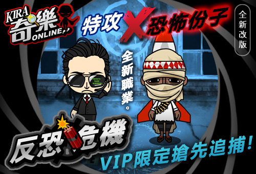 在這次「反恐危機」的改版前夕,官方將舉行一場優先體驗活動,並率先開放VIP玩家搶先體驗改版的內容,以及試玩兩名全新職業!在活動期間,只要是 VIP 身份的玩家,均可以自由進入即將開放的「殺手區」,與所有 VIP 玩家率先體驗新內容!