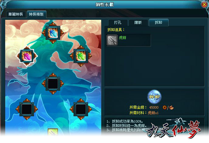 新增的【時裝精製】功能讓時裝不只是好看好玩,還更加實用唷!只要在時裝上鑲嵌寶石,就可以分別增加強攻、逆襲、絕對傷害、免傷、減防、抗減防等功能,增加玩家的防禦率及提昇攻擊能力。